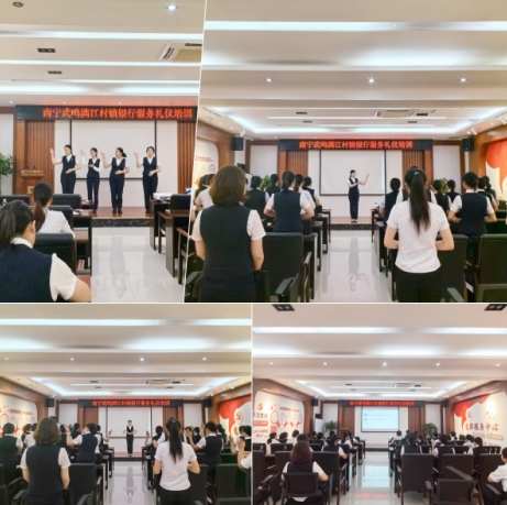 近日,南宁武鸣区漓江村镇银行组织开展文明服务礼仪培训,进一步强化网点形象建设、以提高服务质量与客户满意度为目的,增强员工服务意识,提高服务质量,助力业务经营发展。