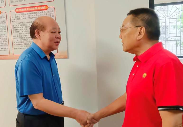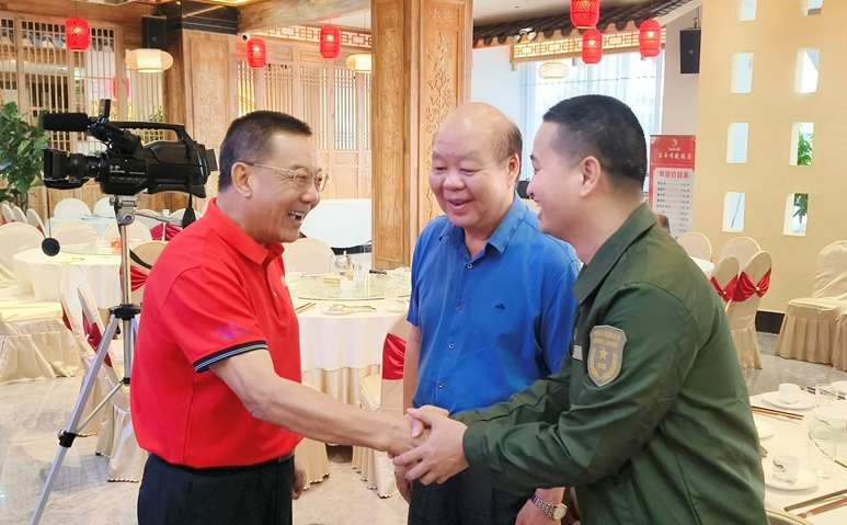 本次交流活动行程共分两站,首站到达河源市爱国拥军促进会,该会会长曾志辉与我会会长梁应昌均系广东省爱国拥军促进会副会长,两位老朋友握手相见,倍感亲切。