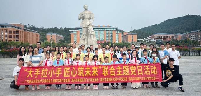 在实现中华民族伟大复兴的征程上,中国共产党是先锋队,共青团是突击队,少先队是预备队,要“着力推动党、团、队育人链条相衔接、相贯通”,为深入学习贯彻新时代中国特色社会主义思想,坚持党建示范引领,认真把握党团队一体化育人链条的内在逻辑和实践要求,深入推进大中小学思想政治教育一体化建设,促进高校与属地小学之间交流联动,近日,广东省职教城高校广东建设职业技术学院机电工程学院学生党支部联合清远市清飞小学、大观小学、江埗小学党支部共同开展了一场别开生面的“大手拉小手 匠心筑未来”联合主题党日活动。
