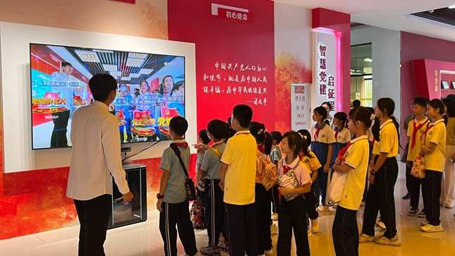 师生们在智慧党建中心参观体验