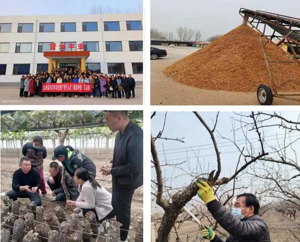 晋州市具有食用菌种植的悠久历史,梨木特有的清香,造就菌菇鲜美无双,营养丰富卓越,胜过山木原料生产的食用菌。该模式是利用修剪后废弃的果树枝条,通过粉碎、高温杀菌、搅拌等工序制成菌棒,在果品采摘后的空档期,在树下种植梨木香菇、赤松茸,既不影响树木生长,又充分利用林下空间实现增收,种植、采摘、分装等环节也为周边村民提供了就业机会。同时,养菌出菇后,废弃的菌渣可以作为果蔬、花卉等农作物的有机肥,形成了“闭环”链条。