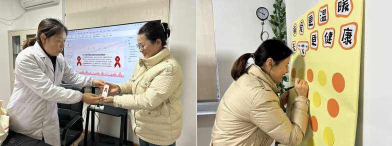为提升活动的趣味性与互动性,负责人还筹备了丰富多样的小礼品,诸如宣传手册、精巧小玩具等,用以奖励积极参与问答的老师们。讲座圆满结束后,全体教职工在 “有爱更温暖,无‘艾’更健康” 的展板上绘制自画像并郑重签下自己的名字。这看似简单的举动,实则传递出温暖的情谊,飞扬的字迹亦勾勒出浓浓的爱心,极大地激发了大家的学习热忱。
