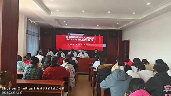 2025年2月27日长阳铺镇中心卫生院年初会议由院长罗琳,副院长陆海涯,夏丽芳和工会主席吕红卫一起主持。