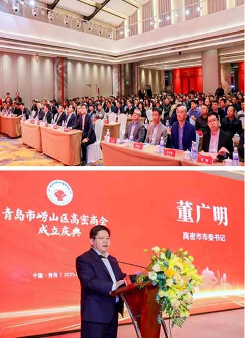 董广明在致辞中代表高密市委市政府向商会成立表示热烈祝贺,向支持商会成立的崂山区委区政府、崂山区相关部门表示崇高敬意,向关心支持高密发展的各位领导嘉宾表示衷心感谢。他说,高密在青岛的老乡人才济济,为青岛经济社会发展作出了积极贡献,并始终情系桑梓故里,助力家乡各项事业取得了长足发展。今天的高密,已成为青岛都市圈的重要一员,正以开放包容的姿态融入都市圈、加快大发展,铺开建设现代化新高密的壮美画卷。高密悠久厚重的灿烂文化、构筑了根脉永系的精神家园,优越畅达的交通区位、彰显了融合一体的同城效应,壮链焕新的现代产业、澎湃了量质齐升的强大动能。青岛市崂山区高密商会的成立,是高密籍企业家的一件喜事,也是深化区域合作的一件盛事。希望新成立的商会以家的思维,聚力服务会员、服务当地、服务家乡,努力打造交流合作的平台、互帮互助的港湾、共赢发展的纽带。希望各位高密籍企业家在大展宏图、事业兴旺、扎根青岛、创富青岛的同时,常回家走一走、看一看,积极为家乡建言献策、牵线搭桥,把更多项目、更多人才、更多资源投向高密。高密市委、市政府将当好企业发展、商会工作的坚强后盾,与大家同心同向、并肩奋进,共同托举高密展翅鹏飞、跨越崛起。