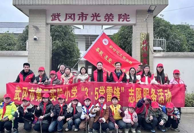本网湖南讯(通讯员 梁希茜 胡叶军)为传承雷锋精神,弘扬尊老敬老传统美德。3月4日上午,湖南省 武冈市第三实验小学组织30余名师生志愿者走进法相岩街道办事处光荣院,开展“童心暖夕阳,行动践文明”学雷锋志愿服务活动。