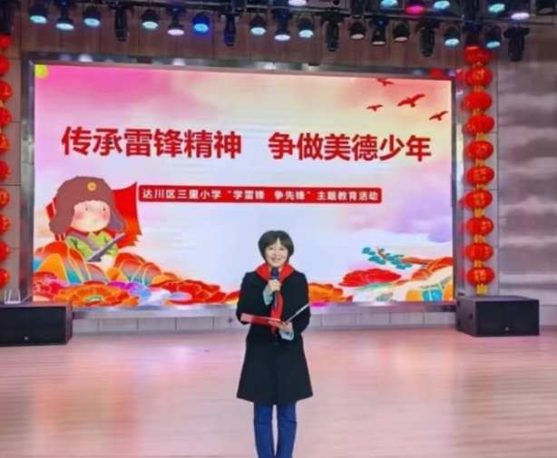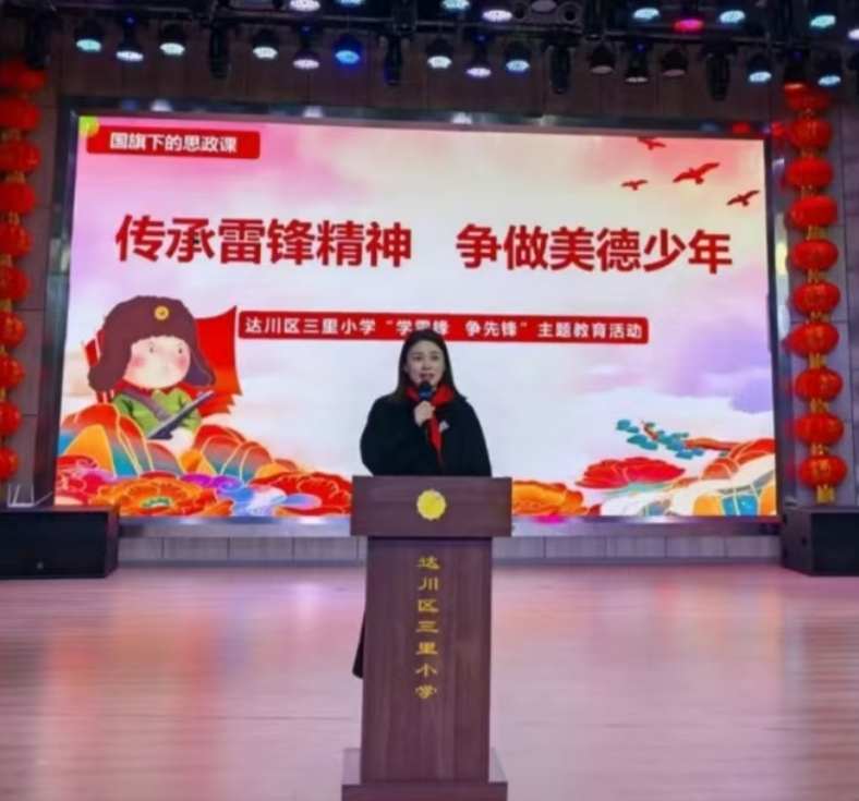 达川区三里小学党委副书记、校长黎玲伶以“传承雷锋精神,争做美德少年”为主题上了一堂生动的思政课。