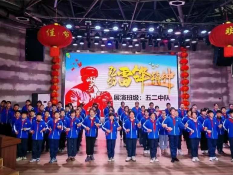 五(2)中队的队员们带来《学雷锋》节奏明快、声声清脆的快板表演,他们向全体师生讲述雷锋故事,展现了新时代青少年对雷锋精神的理解与传承。