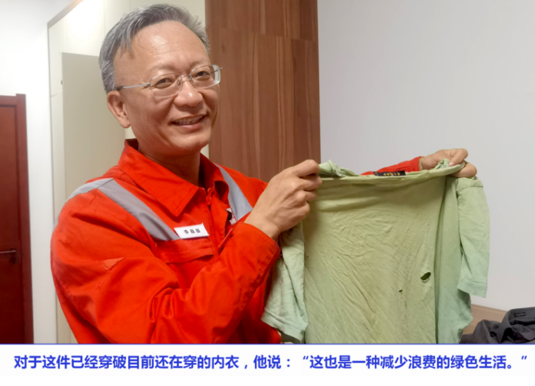 相反,他自己的生活却异常节俭,用女儿用过的旧水杯,洗脸水都要“一水三用”,掉桌上的每一粒饭他都要捡起来吃,长年累月捡废品送给环卫工人。10年来,他没给自己添过一件新衣服,穿他弟弟退役的旧衣服,甚至连工装都洗得泛白或者破了还在穿。
