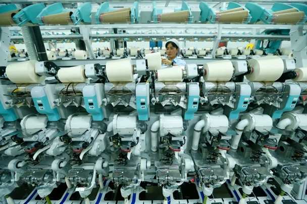 青岛即发盛宝纺织的工人在生产高端纤维
