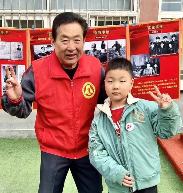 会长侯志龙通过一幅幅展板和照片为孩子们宣传雷锋事迹,讲雷锋故事。孩子们被雷锋的生动感人故事深深吸引,充满了对雷锋的好奇与崇拜。当看到雷锋帮助战友洗衣服、帮扶老奶奶的图片时,孩子们被雷锋精神所感染。