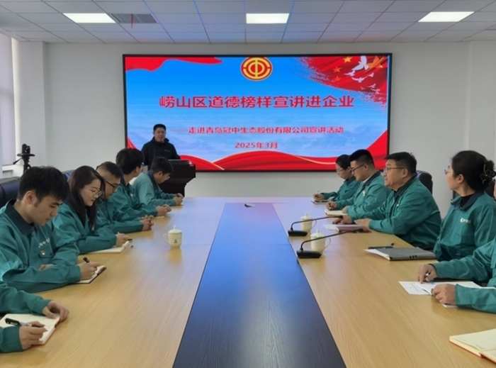 本网青岛讯 据记者从青岛市崂山区委宣传部获悉,3月14日,青岛市崂山区组织开展道德榜样宣讲活动,道德榜样宣讲团成员、青岛市工人先锋胡兵走进上市企业青岛冠中生态股份有限公司以“为工运事业建功 勇当时代先锋”为题开展宣讲。