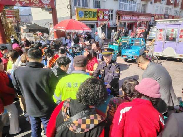 3月13日青岛市崂山区市场监管局执法人员在王哥庄百年大集开展宣传
