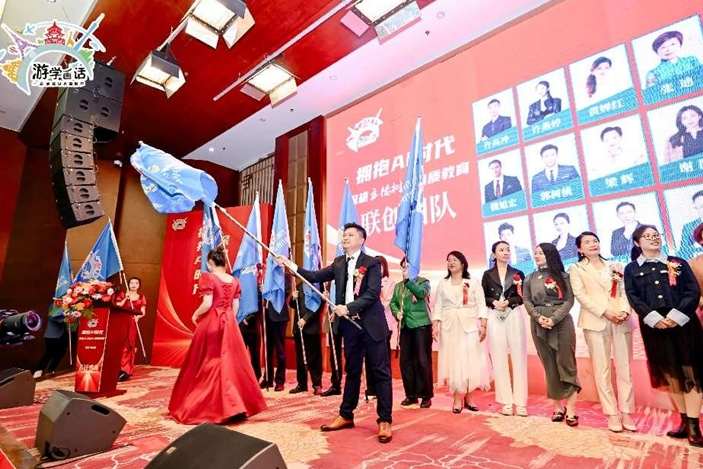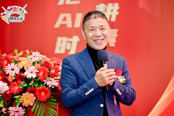 活动在庄严的国歌声中正式拉开帷幕,游学画话外景主持小凯热情开场,向到场的各位领导、嘉宾、教育界同仁及媒体朋友们致以诚挚欢迎与衷心感谢。他强调了艺起梦·游学画话坚守立德树人教育初心,此次乔迁新址不仅是空间的转换,更是迈向新征程、深入探索AI教育融合的重要一步。
