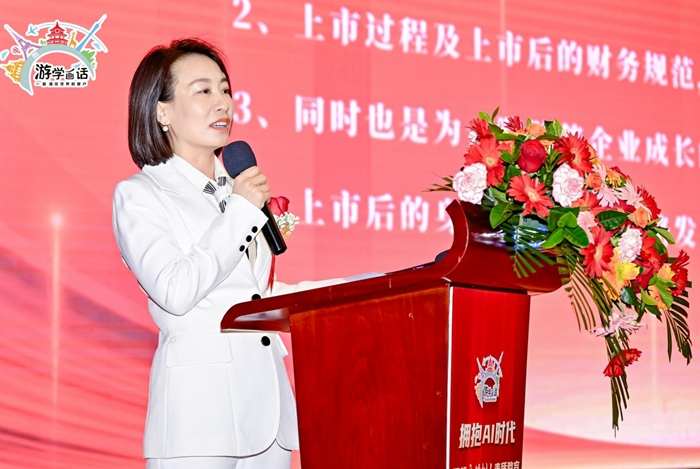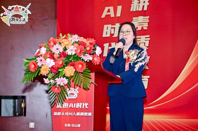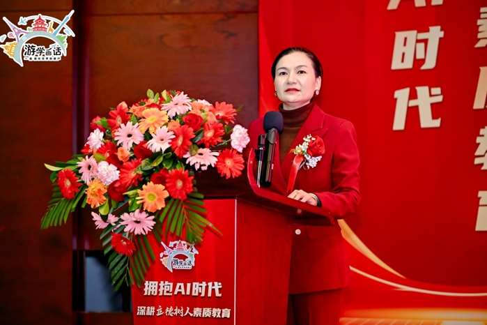 随后的致辞环节,艺起梦·游学画话创始人、董事长肖方方女士率先登台。她回顾了公司一路走来的艰辛历程,分享了创业过程中的点滴故事,表达了对教育事业的深厚情怀与坚定信念。她提到,公司始终将培养青少年综合素质放在首位,致力于为孩子们提供更优质、多元的教育体验,未来也将借助AI技术不断创新教育模式。肖方方女士的话语情真意切,让在场嘉宾深受触动。