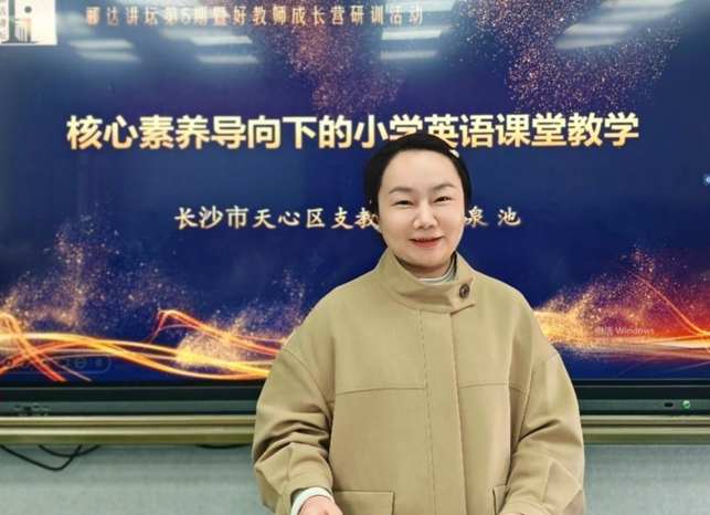 随后,长沙市天心区支教教师代表金泉池老师带来《核心素养导向下的小学英语课堂教学》专题讲座。金老师结合新课标要求,从“目标分层锚定”“情境链创设”“跨学科融合”三大维度,系统剖析大单元教学设计的理论与实践框架,并通过典型案例展示如何将语言能力、文化意识等素养目标融入教学主线,为乡村教师提供了可迁移的范式参考。