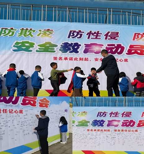 同时,学校还组织了安全教育签名承诺活动。全体师生通过签名承诺的形式,让学生的心底埋下时刻保护自己的种子。