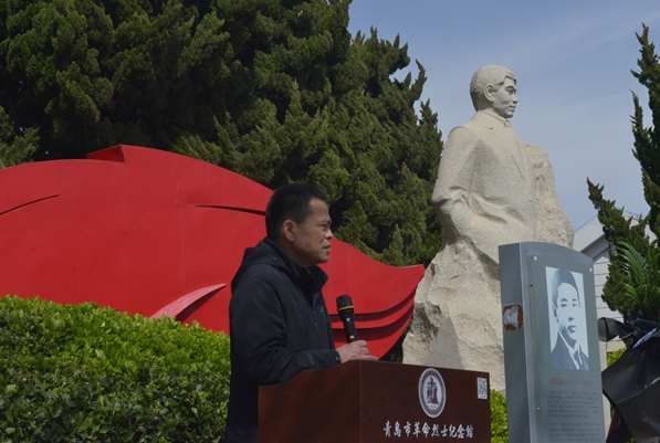 上午十时,在位于栈桥西侧的李慰农公园内,来宾整齐列队,奏唱《中华人民共和国国歌》,之后向李慰农烈士雕像敬献花圈并默哀一分钟,青岛市红色文化研究会会长于海江大校致辞,对各位嘉宾的到来参与此次活动表示热烈欢迎。专程来青出席本次活动的李慰农烈士侄孙李亚宏简要介绍党的早期革命家李慰农波澜壮阔的一生,今年恰逢李慰农烈士牺牲100周年之际,受到青岛市红色文化研究会邀请参加悼念其先祖李慰农烈士的活动十分感动,李亚宏重点介绍李慰农在青岛领导工人运动、指导发动四方机车车辆长和纱厂工人大罢工直至斗争胜利,于1925年7月29日被敌人杀害在李慰农公园所在地,年轻的生命永远定格在30岁。在此,李亚宏呼吁全社会行动起来,保护好、利用好、传承好烈士纪念设施,更好地发挥烈士纪念设施“弘扬红色文化,传承红色基因,赓续红色血脉”起到全社会崇尚英烈的阵地作用。