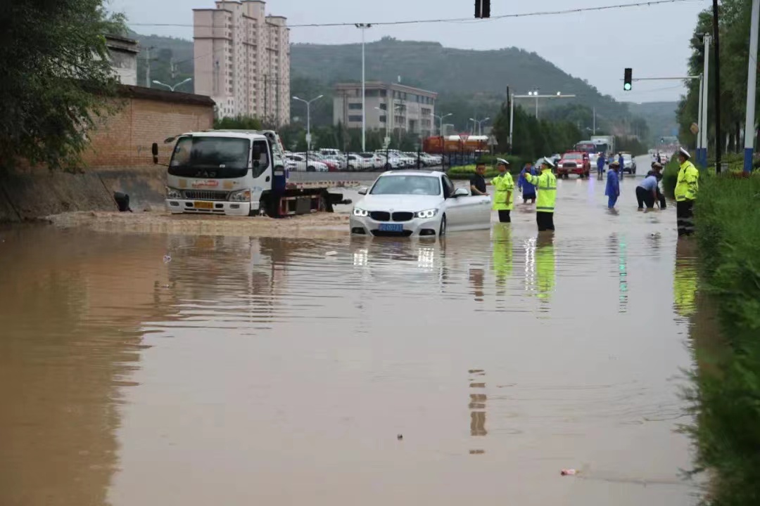 7月10日下午,金昌市金川区,武威市凉州区、古浪县暴雨倾盆,两市公安机关迅速启动恶劣天气应急预案,交警部门全员冒雨坚守岗位,分赴重点路口、路段加强指挥疏导,设置警示标志,组织警力将抛锚车辆推离积水区域并清理路面障碍物,确保道路安全畅通。