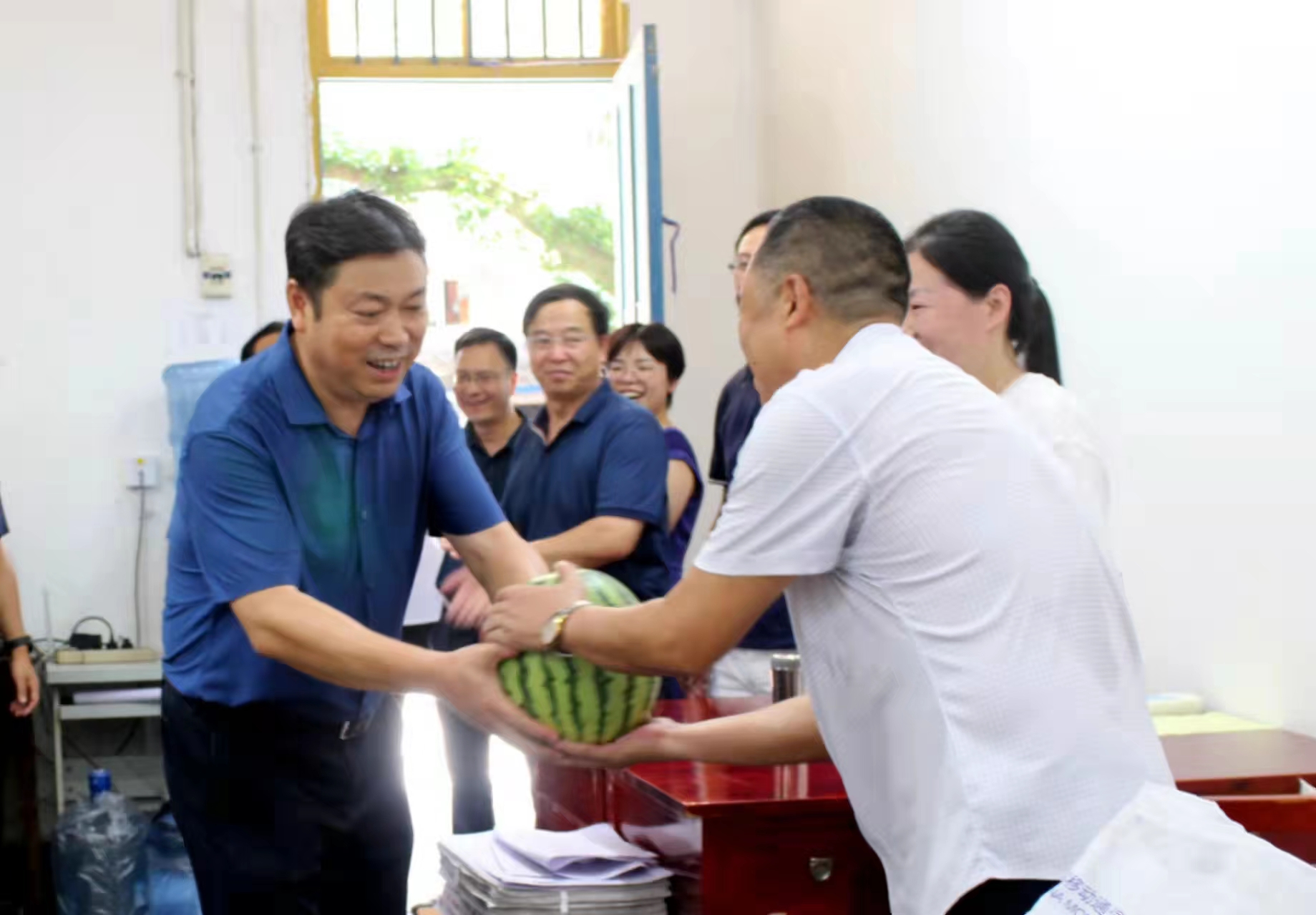 7月15日下午,大竹中学党委书记欧伦文,党委副书记、校长胡开月一行走进高三年级办公室,慰问正在认真备考的高三老师。在办公室,欧伦文、胡开月代表学校党委、行政向奋战在教学第一线的老师们致以崇高的敬意和亲切的慰问,并为老师们送上慰问品。
