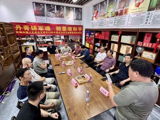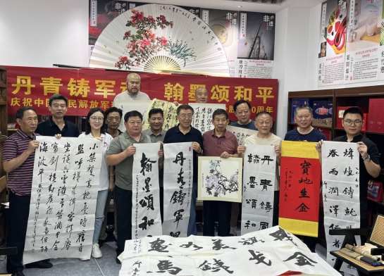 本网青岛讯(王兆祥)在“八一”建军节即将到来之际,7月30日上午9点,“丹青铸军魂·翰墨颂和平”庆八一慈善书画活动在青岛市市北区青商会至味非遗会客厅精彩举行。青岛市慈善书画院组织了岛城军旅书画名家吴海岩、殷庆威、李大力、李青、张中柱、邵惠良、高环光、张宝德等出席参与了笔会交流活动。