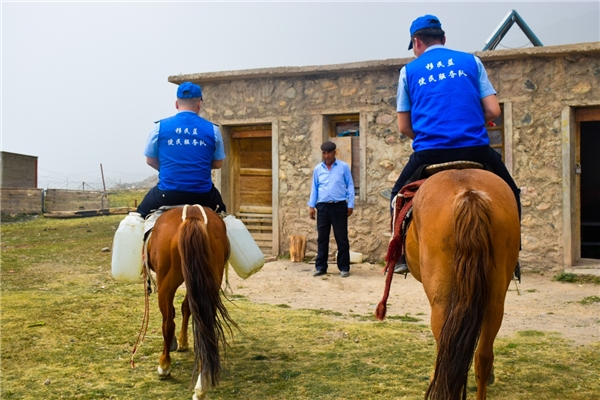 7月28日11时许,“马背服务队”已准备就绪,几人熟练的收拾好医疗器材与药品、生活物资便向着山上出发。在上山的路上,服务队队长木合塔尔与民警张文明聊起“马背服务队”,这是一支从边防部队传承下来的队伍,山上的许多老人是曾经的护边员,因上了年纪,便选择去放牧点放羊,同时守护着边境辖区安全。他们是带着老一辈边防人的精神始终坚守在这里,但随着年纪越来越大,下山反而成了问题,有的老人逐渐出现高血压的状况,有的老人已经抬不起米面袋。今天,是我作为服务队队长的第765天,也是我卸任的时候,希望你能接好这一棒,将老边防的“戍边血脉”传承下去。 民警张文明拍着胸脯回答道:请放心吧,我一定会接好这一棒,守护好这片土地上的每一位老人。
