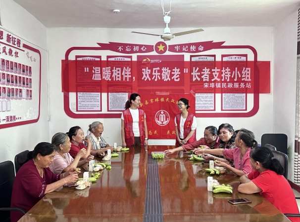 简单的运动过后,志愿者们为老人们送上了精心准备的水果和点心。大家围坐在一起,一边品尝着香甜的美食,一边闲话家常。志愿者们关切地询问老人们的身体状况和日常生活,倾听他们讲述过去的岁月故事和村里的新鲜事。一句句贴心的问候,一串串爽朗的笑声,让老人们的心里倍感温暖与慰藉。