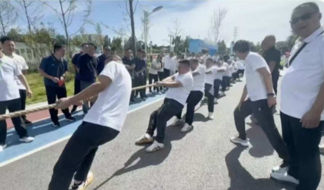 拔河比赛现场,气氛热烈到顶点。队员们紧握绳索、身体后倾,口号声整齐响亮。大家心往一处想、劲往一处使,将团队的凝聚力转化为拉拽的力量,每一次僵持后的推进,都赢得场下阵阵欢呼。