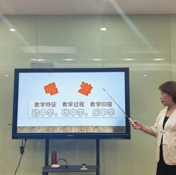 活动中,黄老师带领老师们重温唱游教学的发展变迁,引导大家结合新课标中的学段目标与学期教学目标,深入分析当下唱游教学的现状。她始终强调:“只有真正读懂唱游的精髓,才能在课堂上为孩子种下‘美’的种子,静待它生根发芽、开花结果。”