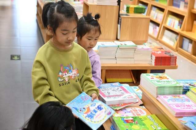小朋友在山东省青岛市即墨区书城挑选图书