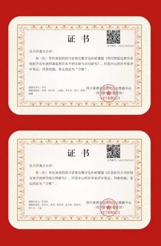 本网四川达州讯(杜靖宇 观理 报道)近日,四川省达州市达川区逸夫小学传来喜讯,由该校承担的两项省级课题均顺利通过结题验收,彰显了学校在教育科研领域的扎实探索与显著成效。