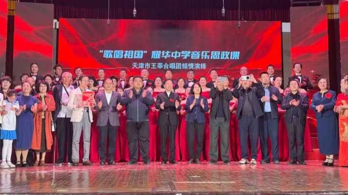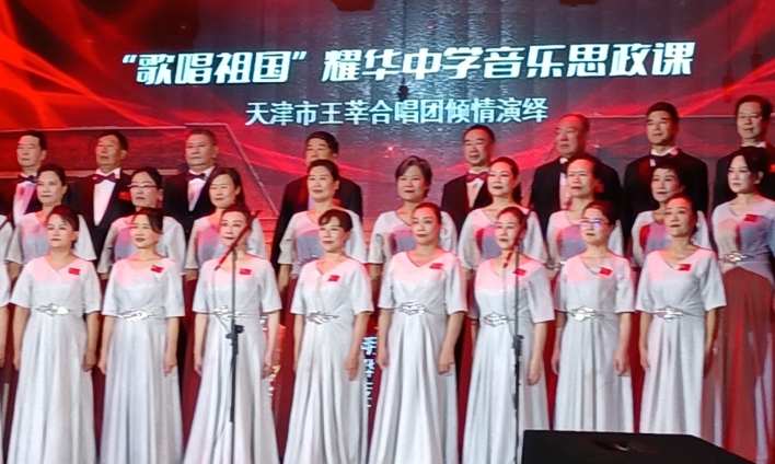 此次举办的“歌唱祖国”音乐思政课,是天津市王莘合唱团和享誉津门的耀华中学一道,在市区两级文明办和教育部门全力支持下,首创通过音乐与思政教育的深度融合,寓教于乐,以艺术形式阐述党史、国史,激发青少年爱国情怀。
