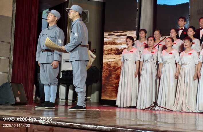 下午13:30时,演出正式拉开序幕。当《松花江上》的凄婉旋律流淌开,现场瞬间沉寂,那泣血般的歌词直击人心。《黄水谣》的悠长、《河边对口曲》的生动述说,共同勾勒出中华民族山河破碎的悲壮图景。