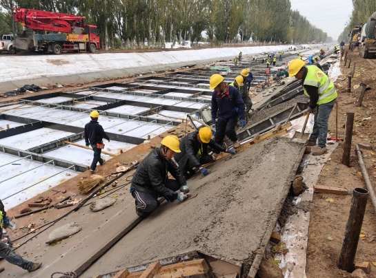 进度要抢,质量更要保。“我们要建的是‘精品工程、品质工程、标杆工程’,质量上绝不能有半点含糊!”马新的话掷地有声。为了守住质量安全底线,项目部将现场质量安全管理人员从5人增加到10人,他们穿梭在各个作业面,对模板垂直度、混凝土坍落度等关键指标进行严格检查,不放过任何一个细节。在混凝土搅拌站,项目部专门设立了值守人员,从原材料进场到配合比调试,再到混凝土出站,每一个环节都进行全程监督,确保每一方混凝土都符合质量标准。“混凝土的质量直接关系到渠道的耐久性,我们从源头上把关,就是要让这条渠不仅能满足当下的灌溉需求,更能经得起历史和时间的考验。”现场质量员的话,诠释了宁工局人对“工匠精神”的坚守。
