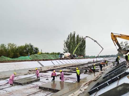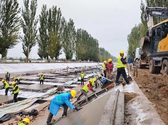 “现在人力和机械比之前增加了一半有余,240多名工人、50余台机械同时作业,模板数量也比以前增加了50%。截至10月16日,已完成渠道混凝土浇筑任务的80%,确保10月20日具备通水条件。”项目部经理马新介绍起当前的施工强度时,语气中透着一股攻坚克难的决心。
