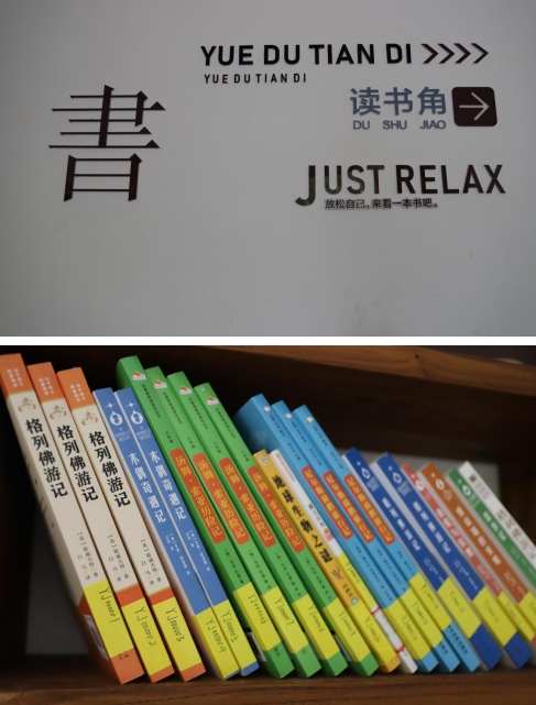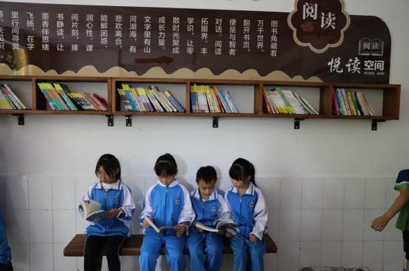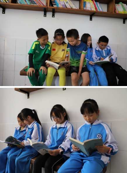 读书角内还设置了长凳,同学们可以坐在读书角,静静享受阅读时光。“我比较喜欢故事书,这里有好几种童话故事集,很符合我的胃口!”六年级李翊同学特意从科教楼跑到读书角,他兴奋地分享起自己的感受来。