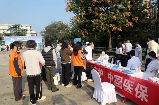 互动体验区吸引了大批师生驻足参与。“参保知识大闯关”以趣味答题方式普及医保政策;“医保风”漆扇制作将传统工艺与政策宣传巧妙融合,深受青年群体欢迎。现场“砸金蛋”环节和套圈游戏气氛热烈。在“我为参保代言”拍照打卡点,王同学告诉记者:“我和室友不仅拍了打卡照,还发了小红书。这种年轻化的宣传方式,让我们对医保政策有了全新认识,也更愿意主动了解和分享。”