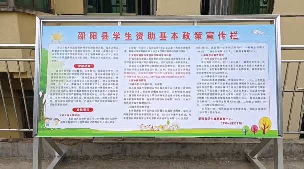 活动期间,学校也在操场显眼处设置宣传展板,与教学楼电子横幅联动宣传:前者张贴内容清晰的资助政策海报,后者滚动播放核心要点,全方位吸引学生关注了解。