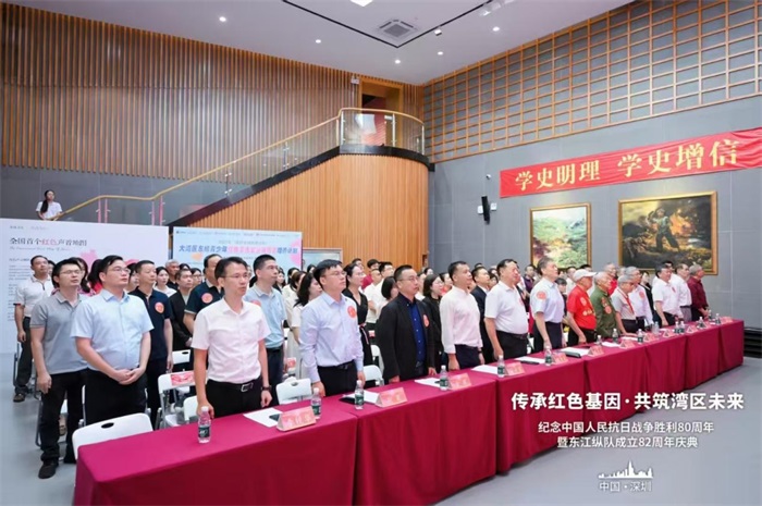 2025年10月11日,在庄严的深圳东江纵队纪念馆内,“传承红色基因·共筑湾区未来”庆典活动隆重举行。此次活动由深圳市东江纵队老战士联谊会主办、深圳市东弘公益基金会执行,东江纵队老战士廖清、罗竞辉、何鹏飞亲临现场,与东江纵队革命后代、历史文化专家、政企社校、慈善公益先锋等代表共聚一堂,共同纪念中国人民抗日战争胜利80周年暨东江纵队成立82周年,推动红色东纵精神与粤港澳大湾区发展深度融合,在缅怀历史中薪火相传、开创未来。