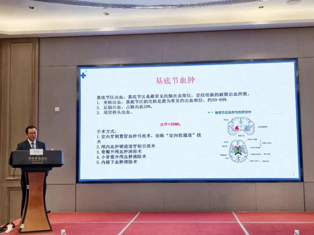如东县人民医院神经外科主任王震则聚焦《基底节区脑出血手术治疗》,详细介绍定向穿刺置管血肿引流术等 5 种手术方式,为临床操作提供参考。