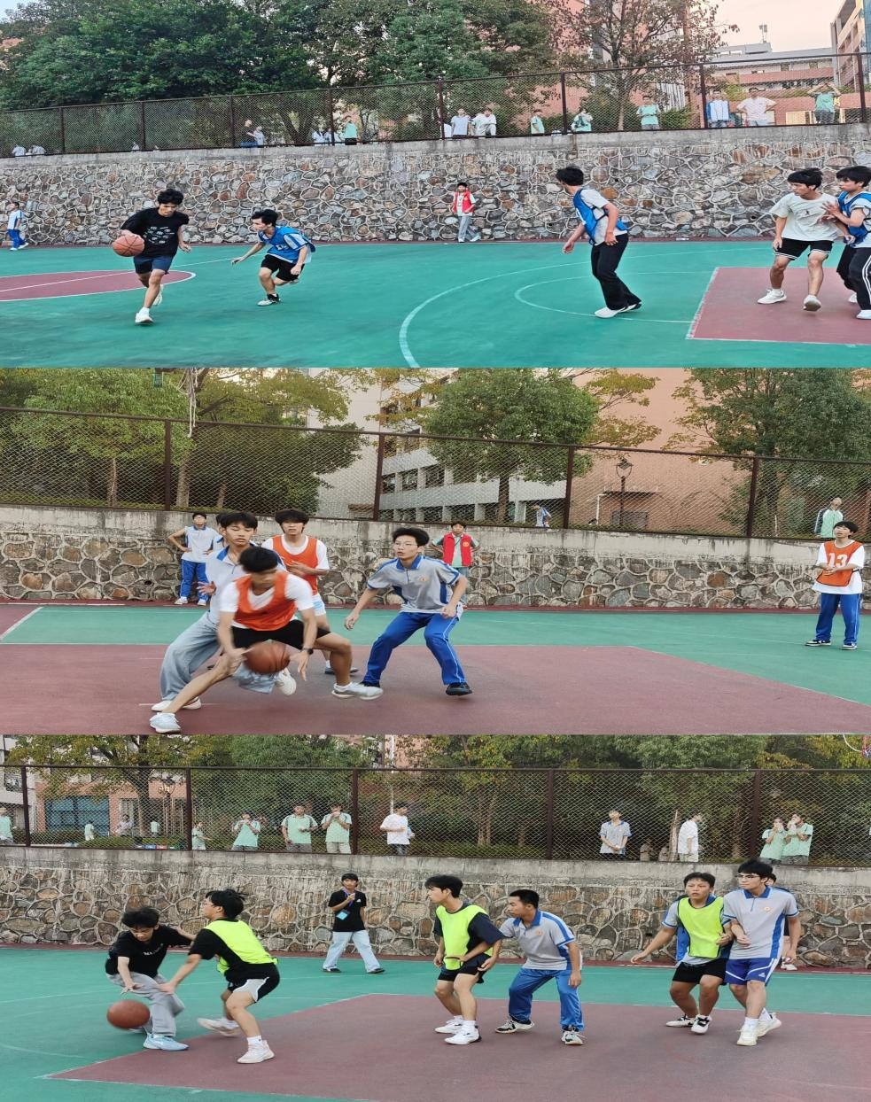 比赛伊始便高潮不断,首轮抽签淘汰赛悬念迭起,每支队伍都为晋级全力以赴。场上的每一次抢断、突破与投篮,都牵动着场下观众的心。第二周,突如其来的大降温和不间断的降雨给赛事带来了一定阻力,却未能阻挡篮球与青春碰撞的热力。球员们在冷风中奔跑的身影愈发矫健,以汗水诠释“力挽狂‘篮’”的决心。场边拉拉队的助威声此起彼伏,班主任全程陪伴,为精彩表现喝彩,也为一时失利鼓劲,师生情谊在竞技中悄然升华。体育组教师全程指导,保障比赛公平流畅;体育特长生担任裁判,展现专业素养;学生会成员穿梭于各赛场,负责记分、协调与后勤,他们的默默付出成为赛事顺畅运行的关键。经过多轮淘汰赛与决赛阶段的循环角逐,最终八个班级斩获本次赛事相关奖项。无论名次高低,每支队伍都赢得了掌声与尊重,“友谊第一,比赛第二”的宗旨贯穿始终。