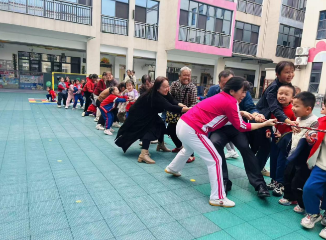 活动伊始,“爷爷奶奶的小时光”温情启幕。孩子们带着提前准备的祖辈照片,大方分享爷爷奶奶的故事;光影屏幕播放的老照片,唤起老人的青春记忆;“马兰花开二十一”“丢沙包”等经典游戏,让老少同乐,笑声不断。“传统同行乐相伴”环节尽显文化魅力,老人们化身“太极老师”,教孩子们练起“云手”“野马分鬃”;在书法区,祖孙携手握笔,在红纸上写下“福”“寿”二字,墨香里满是祝福。“百家米”汇聚仪式将活动推向高潮。孩子们依次将自带的大米倒入大罐,大声送出“祝爷爷奶奶健康快乐”的祝福。幼儿园用部分“百家米”熬煮“福寿粥”,传递暖心关怀。