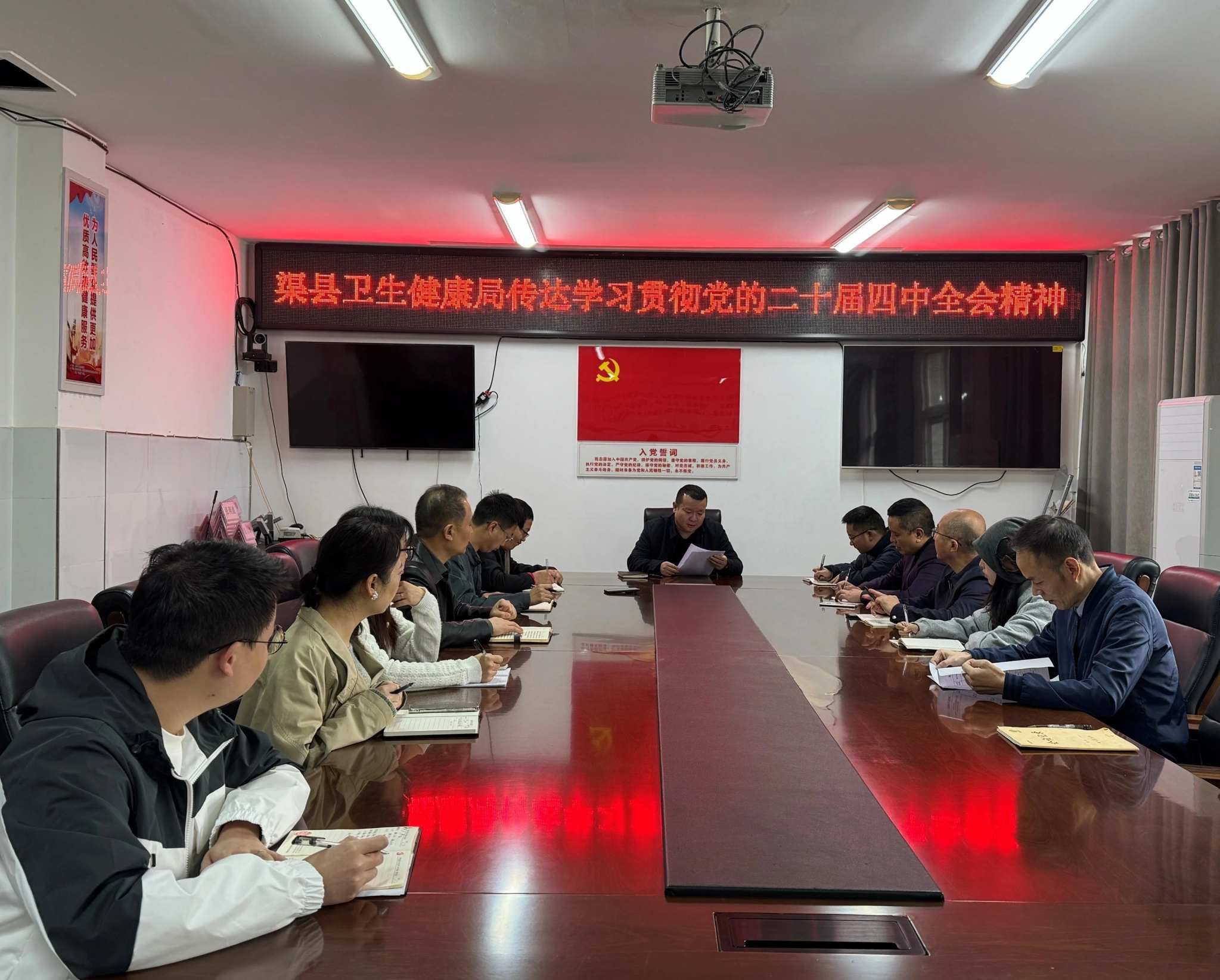 本网四川达州讯(杜靖宇 观理 报道)10月27日上午,渠县卫生健康局召开专题会议,集中传达学习党的二十届四中全会精神,研究部署全县卫生健康系统贯彻落实工作。会议由局党委书记、局长张利波同志主持,局领导班子成员、机关全体干部职工参加。
