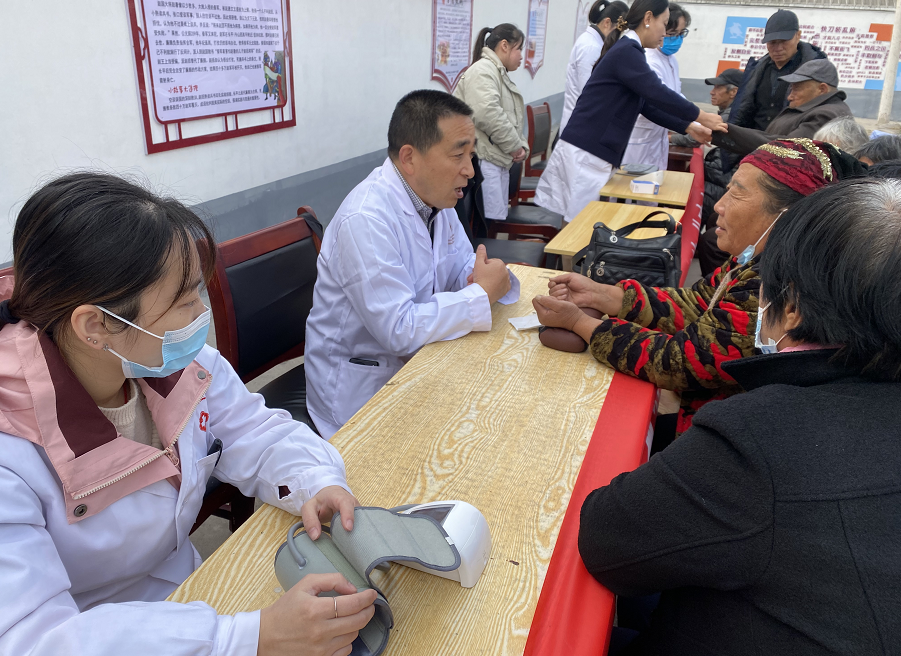 活动设在村民广场,接到通知的村民踊跃参加。医务工作者为老人们提供血压检测、中医体质辨识等基础项目,并针对高血压、糖尿病、关节疼痛等常见慢性病进行用药指导和康复建议。中医科专家还现场演示了穴位按摩等中医适宜技术,帮助老人们缓解身体不适。