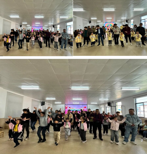 舞台上,祖孙同框的表演更是将温情拉满。小班萌娃们奶声奶气唱响《好娃娃》,摇晃着小脑袋模仿 “帮爷爷捶背、给奶奶端茶” 的模样,惹得台下长辈笑出眼角细纹;中班孩子手比心、身轻晃,用《感恩的心》手势舞传递心意,指尖划出的每一道弧线都藏着对长辈的依赖;大班哥哥姐姐则带领爷爷奶奶跳起《健康歌》,伸展手臂、扭动腰肢的互动里,笑声与音乐交织成最动听的节日旋律。没有华丽的舞美,却因 “祖孙共演” 这一核心,让每个瞬间都格外动人。