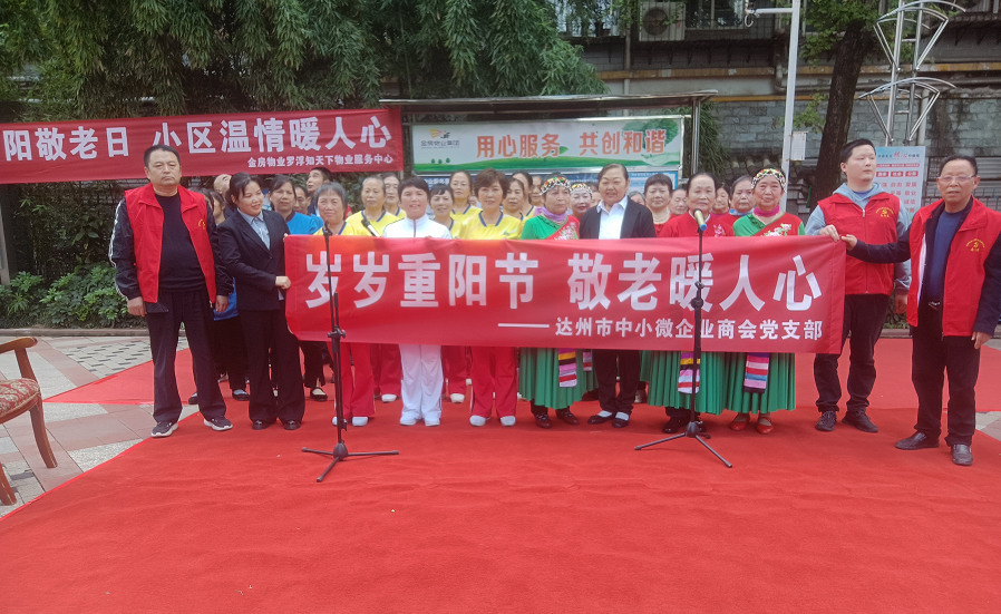 本网四川达州讯(杜靖宇 观理 报道)岁岁重阳,情暖桑榆。在重阳节来临之际,为传承尊老、敬老、爱老、助老的中华民族传统美德,达州市中小微企业商会党支部联合金房物业罗浮知天下物业服务中心,面向辖区60岁以上老人精心举办“九九重阳敬老日,小区温情暖人心”主题活动,以欢声笑语庆老人节,歌舞健操活百岁,为老人们送上节日的关爱与美好祝福。