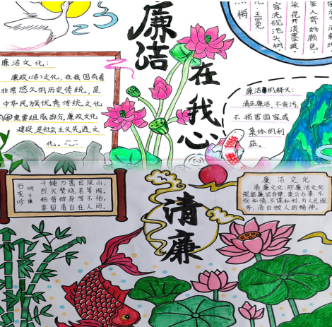 在教师们的细心指导下,同学们利用课余时间及周末,用心搜集资料,巧妙设计版面。孩子们手中的画笔犹如廉洁的使者,以图像绘廉洁,以文字述廉洁。每一份作品都是孩子们智慧与努力的体现,不仅色彩斑斓、图文并茂,字体美观,令人赏心悦目,而且标题醒目,生动展现了廉洁文化的深刻内涵。经过严格评选,一批优秀作品脱颖而出,并获得了表彰。