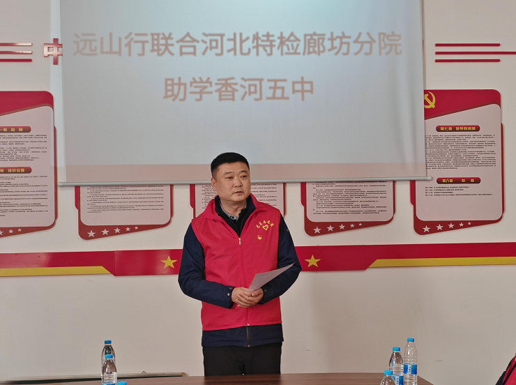 在活动现场的物资与资金发放仪式上,廊坊分院党支部书记董宏鹏指出,此次助学既是对困难学生的精准帮扶,更是党员践行初心使命的具体行动,廊坊分院将持续关注孩子们的成长。香河县第五中学校长、教师及学生代表先后发言,对廊坊分院干部职工的助学善举表示衷心感谢。