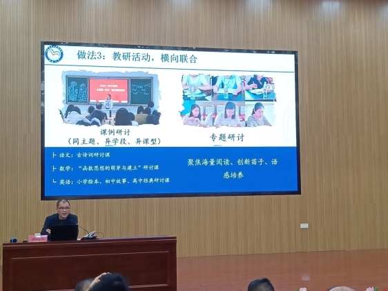 实践中,两校构建起“纵贯横联”的教研机制:目标衔接上,通过研读课标、梳理知识体系,明确教学重点与衔接节点,帮助教师树立“全学段教学视野”;课程贯通方面,组建跨学段教研组,共研“学科能力发展要求”,保障学生学习“系统性进阶”;教研联动以“课例研讨”“专题研讨”为抓手,针对关键议题形成协同培育方案;创新推行“三精选、三共研”模式,精选研讨主题、课例序列和核心团队,通过“共备、共观、共评”加速教师专业成长。