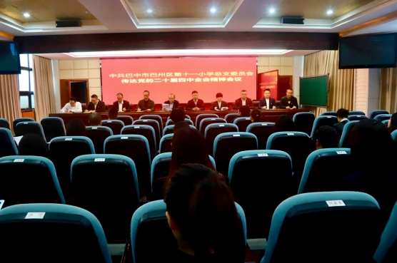 巴中市巴州区第十一中小学党总支传达学习贯彻党的二十届四中全会精神会议场景。