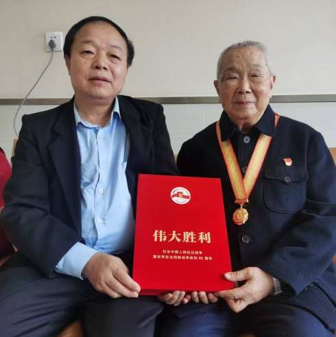 全国基层党建网副主编张仕文,采访七一勋章获得者周永开(右),学习贯彻四中全会精神视频报道。